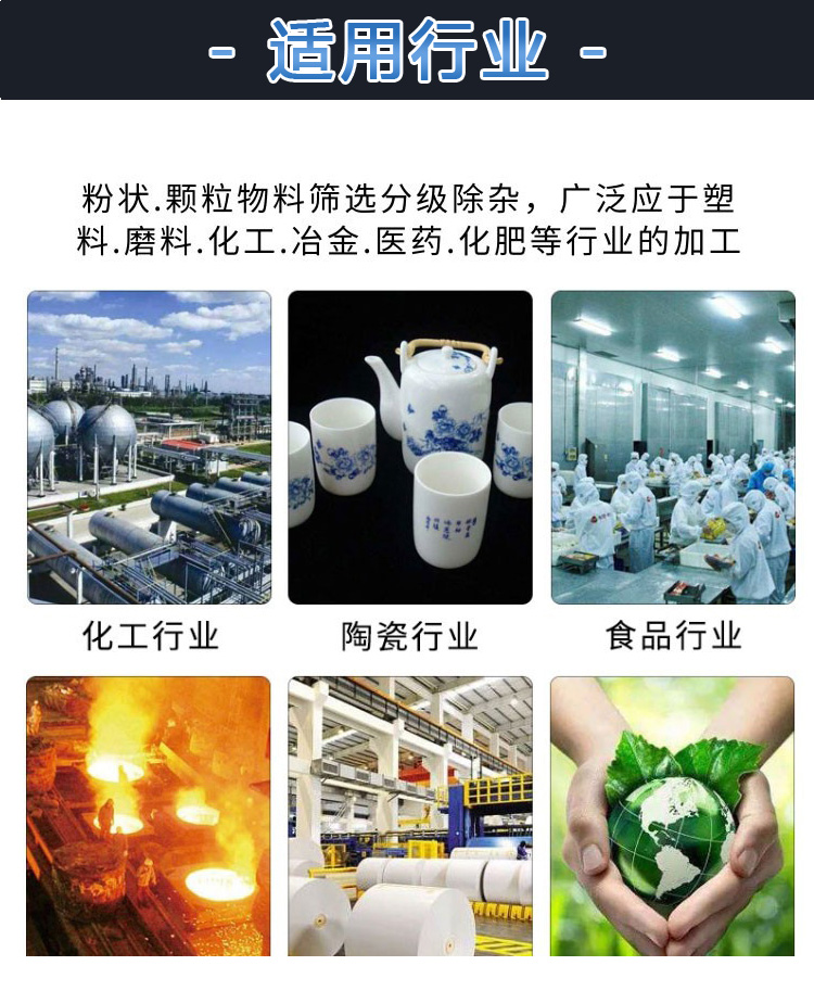 直線振動篩迫使物料在篩網上被拋起向前做拋物線運動,以不同的篩網過濾達到篩分目的。具有高產低耗、自動卸料等特點,適合流水線作業。