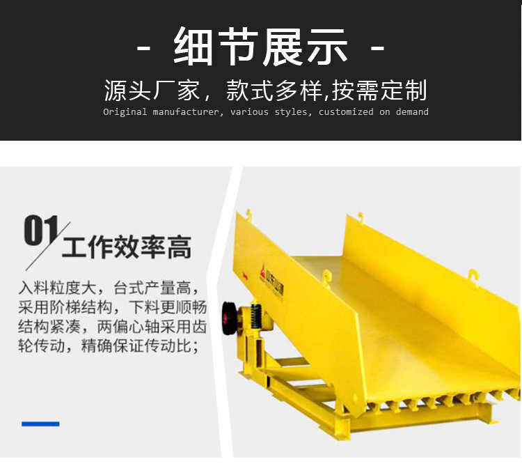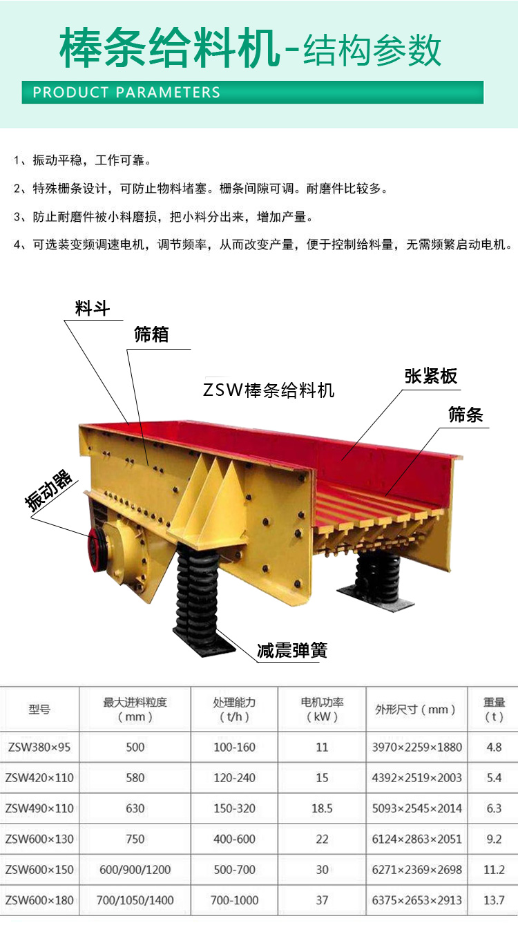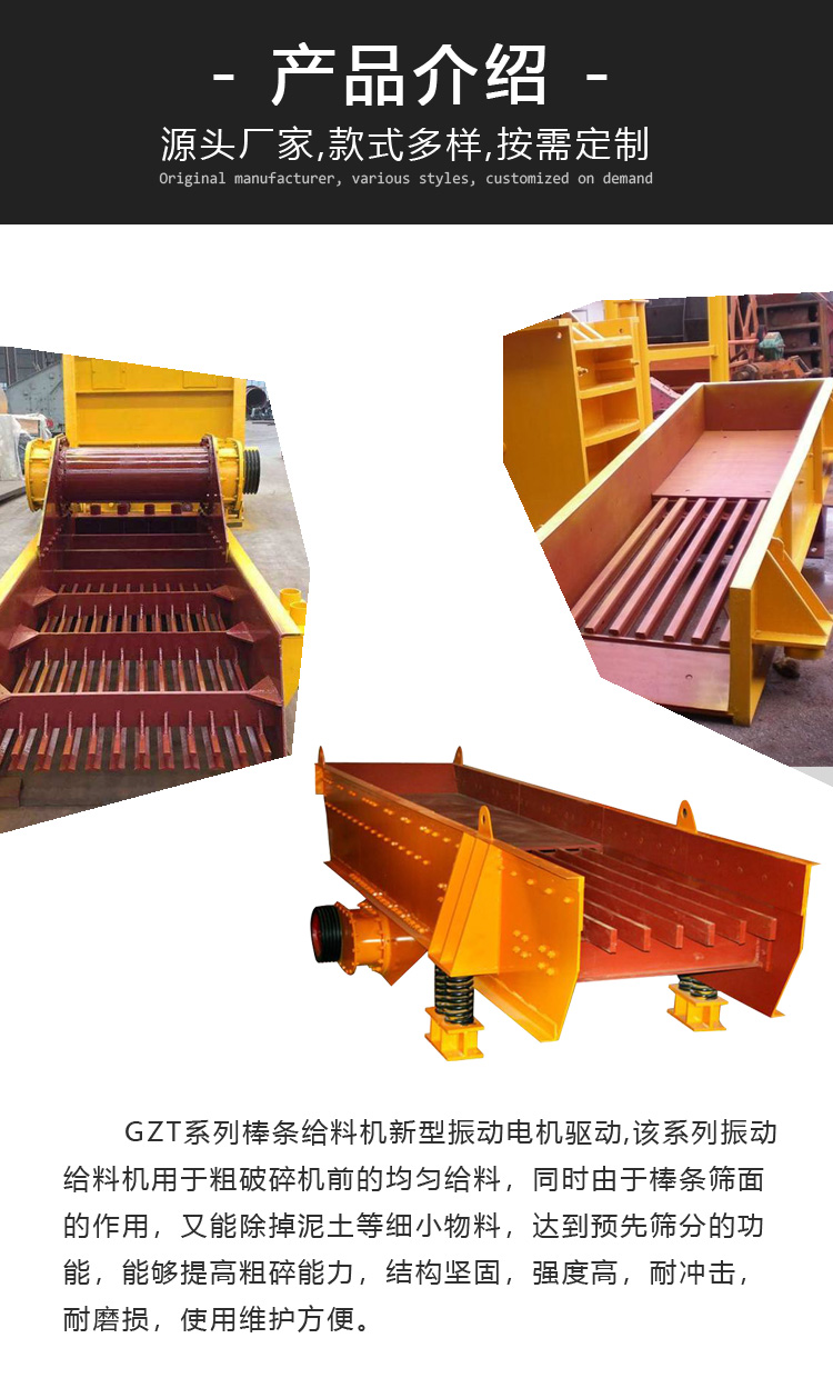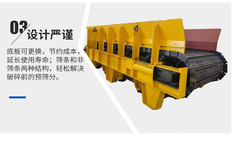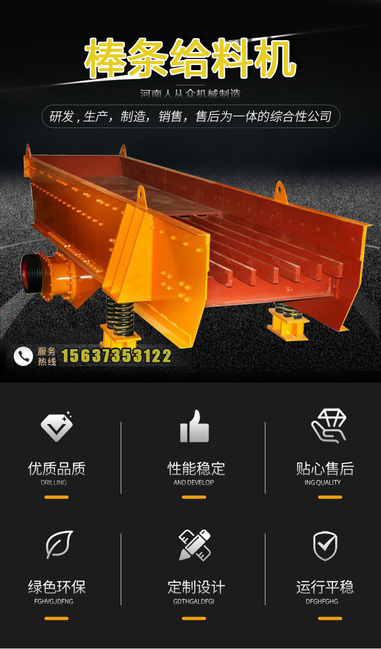 棒條式振動給料機由新型振動電機驅動,通常用于粗碎機前的均勻給料,它可以去除土壤等細料,實現預篩功能,提高粗碎能力,結構堅固,強度高,耐沖擊,耐磨,使用維護方便。