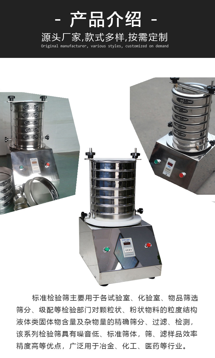 標準檢驗篩是一種實驗室篩選機,也稱樣品篩和分析篩,主要用于大學實驗室、科研機構或一些公司的實驗室。它不同于一般的振動篩,篩機和篩網有一定的標準限制。